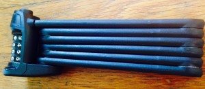 Size: At just about 7 1/4″, the folded lock fits almost exactly inside my jersey pocket without sticking out of the top. The full circumference unfolded measures about 2′ 9″ and is meant to fit through your frame. I was able to get it through my seat tube, rear wheel and around a post without much trouble.
