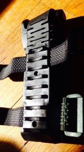 As one who doesn’t like things messing with the clean lines on my bike, and who also uses both bottle cages on just about every ride, I like the idea of having a lock small enough to fit in a pocket. But if you’d rather carry this on your frame, the case works well. With a snap-down cover that keeps the lock firmly settled, I didn’t notice any noise or jiggling at all. A small note, however, the back side of the case has curved ridges of plastic (shown to the right) that fit pretty well on a rounded tube, but my Cervelo in all its squoval glory doesn’t quite allow for a contoured fit. If your bike also sports a non-round tube shape, you’ll probably want to be a bit more careful when tightening down the velcro straps to make certain that you don’t shape your frame to fit the case.