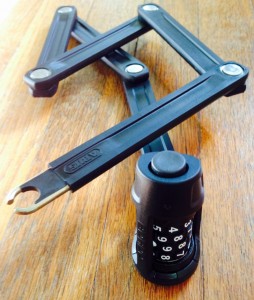 Combo: With a pretty easily set combo, you also don’t have to worry about carrying keys along with you. As long as you can remember your own personal 4-digit code, the tumblers slide pretty quickly into line without much trouble. Then a button on the side releases the links. Simple, eh?
