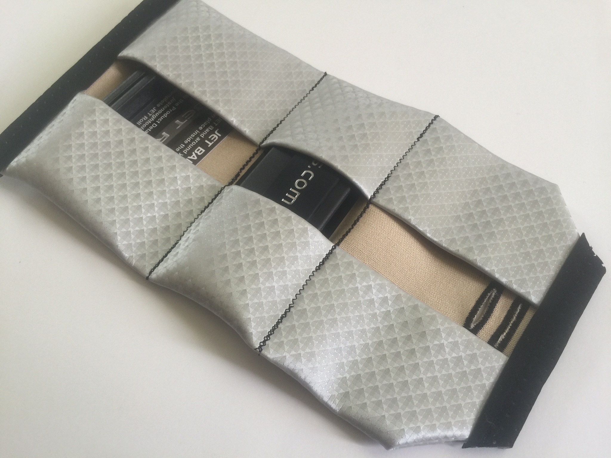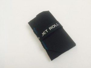 In fact, I found this edition of the Jet Roll to be pretty water tight, which means that sweat-soaked dollar bills are a non-issue. I even took it a step further by holding the whole roll under running water–packed with cards and gear–no water got through to the Aurora’s contents. Pretty sweet for those of you riding in the rain, or worse. Plus, the outer band that wraps everything up tightly offers some grip on the inside of your pocket, so it pretty well stays put.