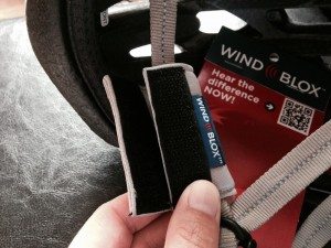 If you haven’t heard of Wind-Blox, let me explain. You merely affix these foam-filled cylinders to your helmet straps in front of your ears, and they stay in place with velcro fasteners. This is simplicity in design, but I did find a slight learning curve to affixing the Wind-Blox properly at first.