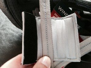 Left Strap: Start by unfolding the Wind-Blox, and lay it flat with the label facing away from you so that the soft side of the velcro faces up and to the left. Fold over the right side until you can see the logo and the rougher velcro. Then, velcro it all together. Boom! You did it. OK, if you didn’t get that, I’ve put it in pictures below. Now just repeat with the right side.